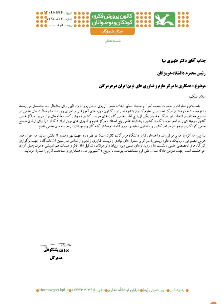 همکاری مرکز رشد دانشگاه هرمزگان با کانون پرورش فکری کودکان و نوجوانان