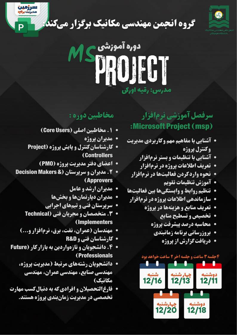 فراخوان نامنویسی در دوره آموزشی تخصصی نرم‌افزار Microsoft Project (MSP)
