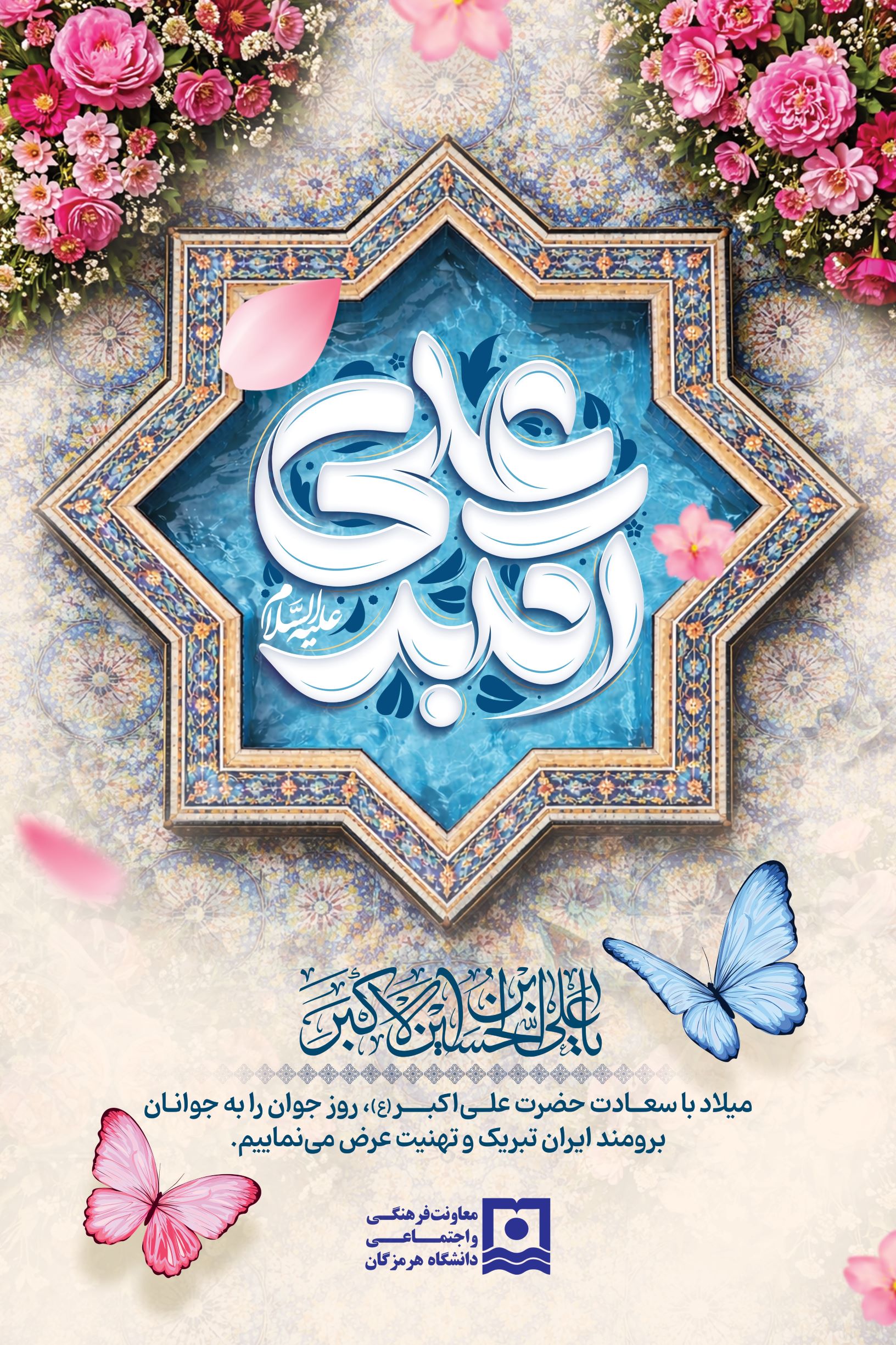 به مناسبت فرا رسیدن یازدهم شعبان‌المعظم، سالروز ولادت باسعادت حضرت علی‌اکبر (ع) و روز جوان، اینجانب ضمن تبریک این مناسبت فرخنده به همه جوانان به‌ویژه دانشجویان فرهیخته دانشگاه هرمزگان، بر اهمیت نقش بی‌بدیل نسل جوان در پیشرفت علمی، فرهنگی و اجتماعی جامعه تأکید می‌کنم.