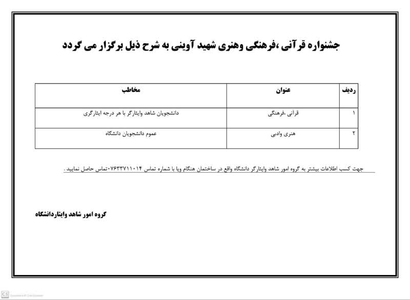 گروه شاهد و ایثار دانشگاه هرمزگان برگزار می نماید.
