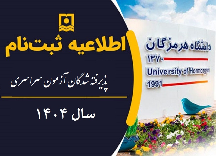راهنمای ثبت نام پذیرفته شدگان نهایی رشته های با آزمون و رشته های صرفاً با سوابق تحصیلی سال 1405-1404 دانشگاه هرمزگان (شهرستان بندرعباس) و مجتمع آموزش عالی میناب (محل تحصیل شهرستان میناب)