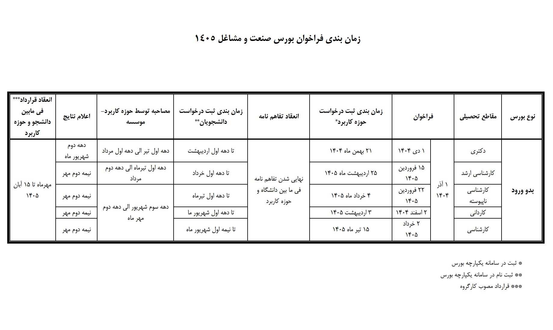 دومین فراخوان رسمی بورس صنعت و مشاغل ویژه دانشجویان نو ورود 1405