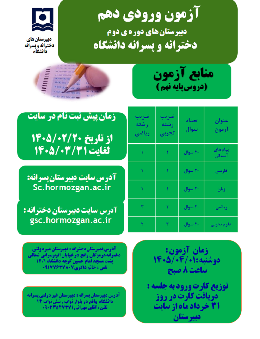 پیش ثبت نام دبیرستان پسرانه دانشگاه
